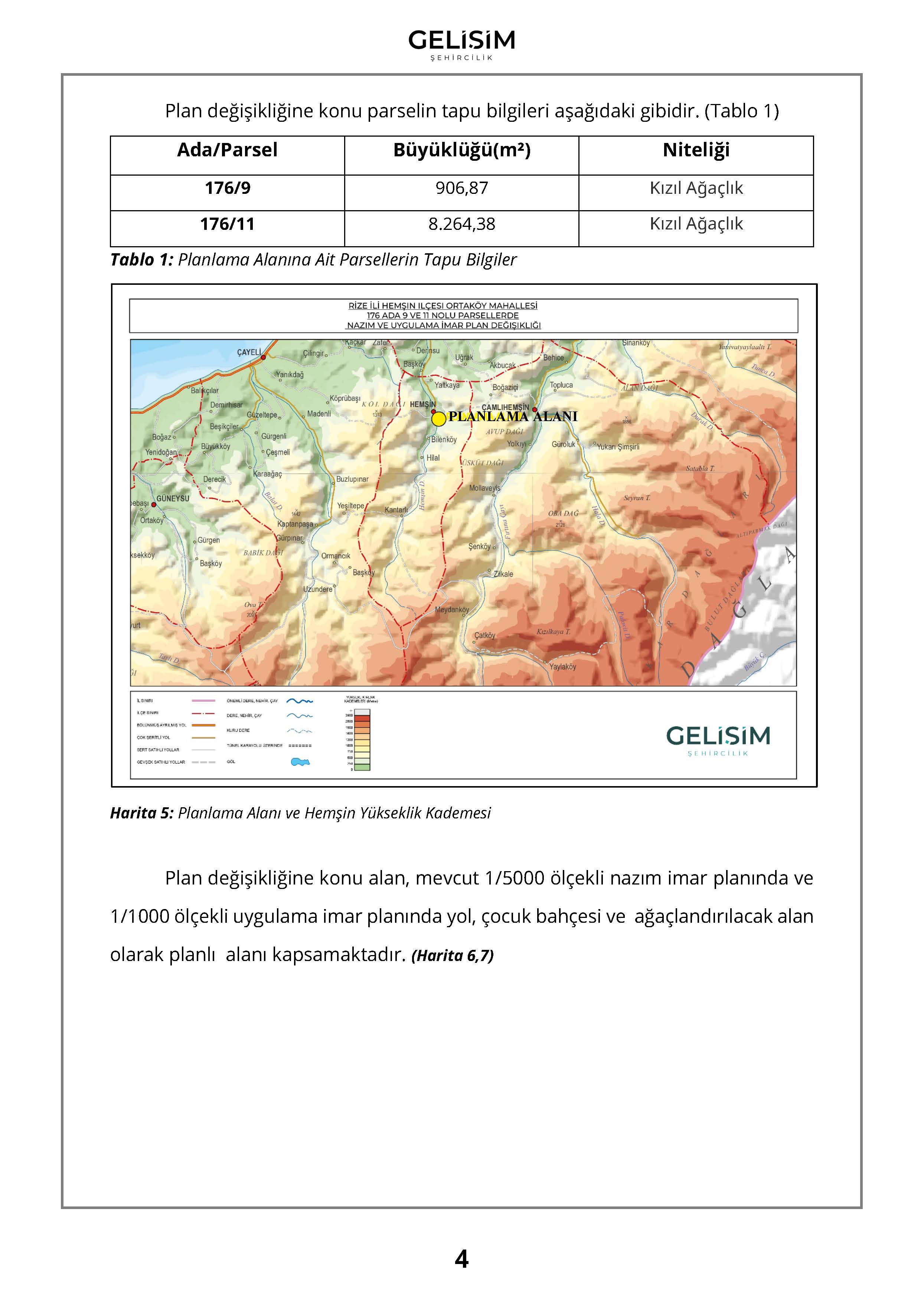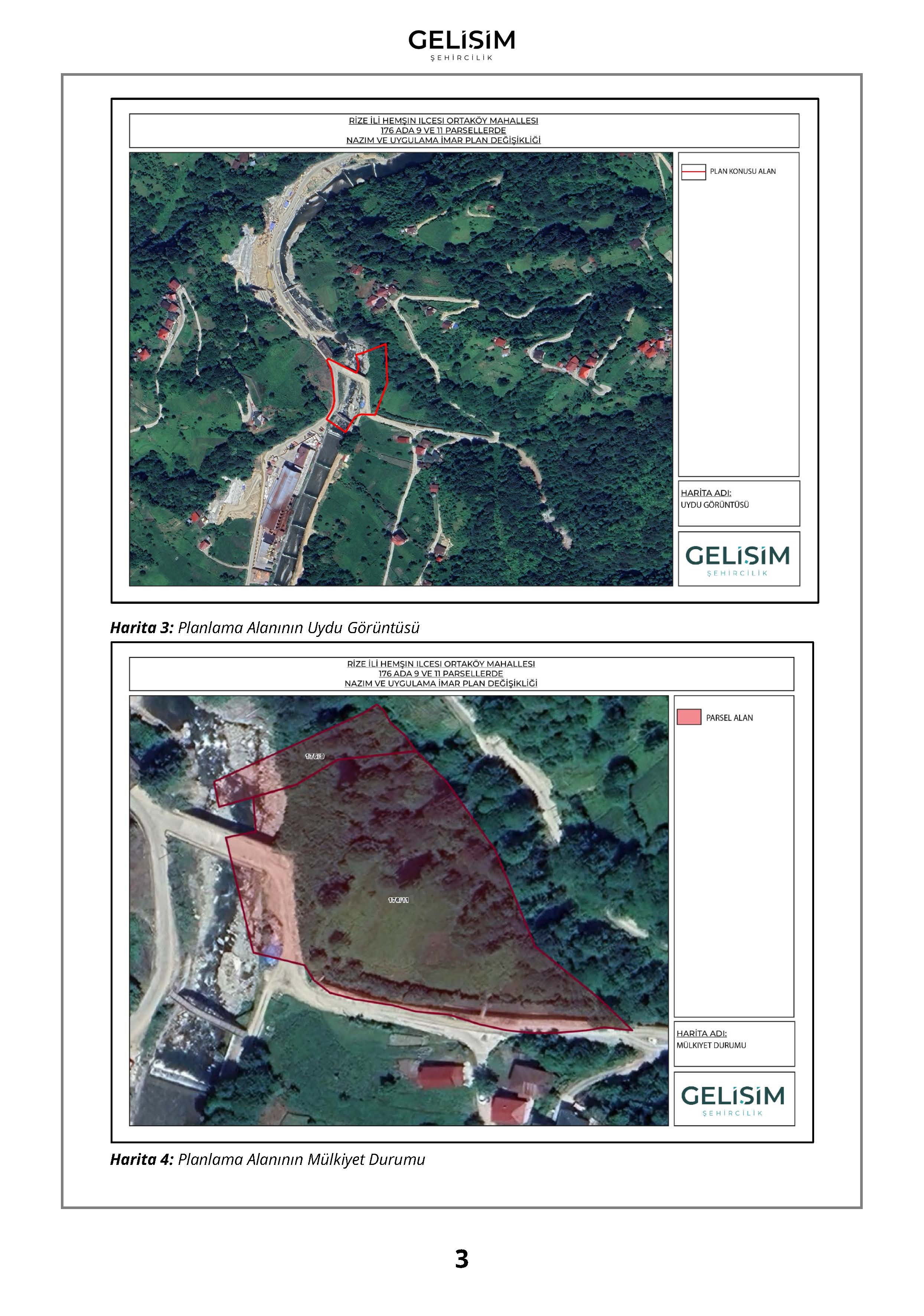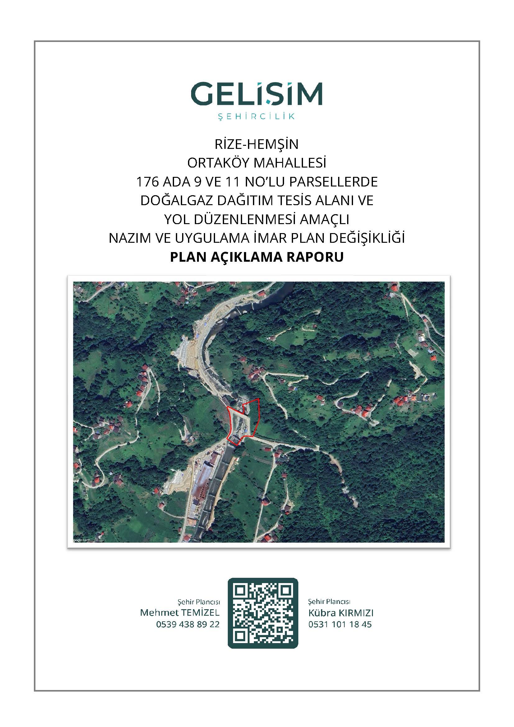 İmar Planı değişikliğine konu alanın Ortaköy Mahallesi Hemşin Deresi sağ sahilinde bulunan 176 ada
