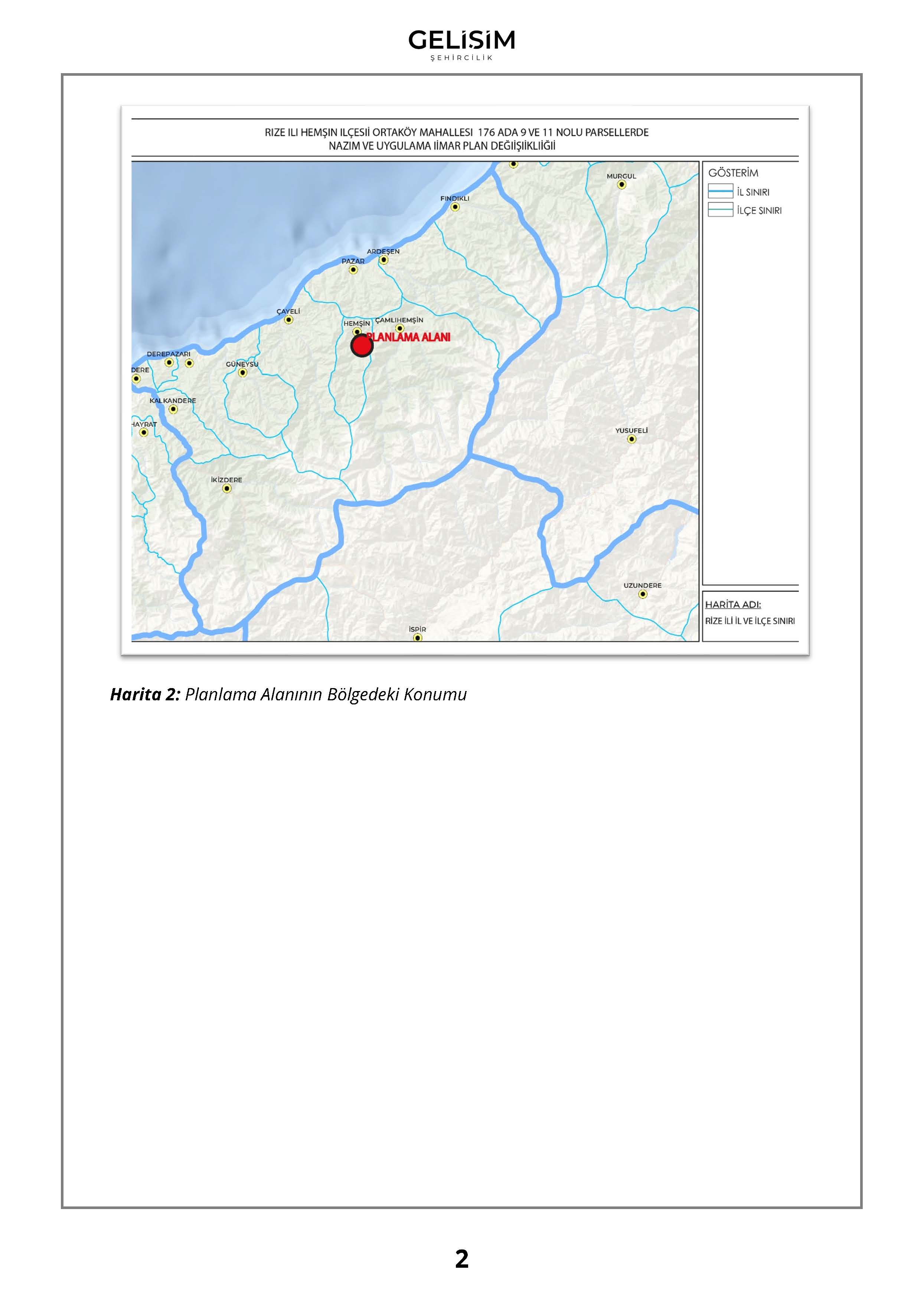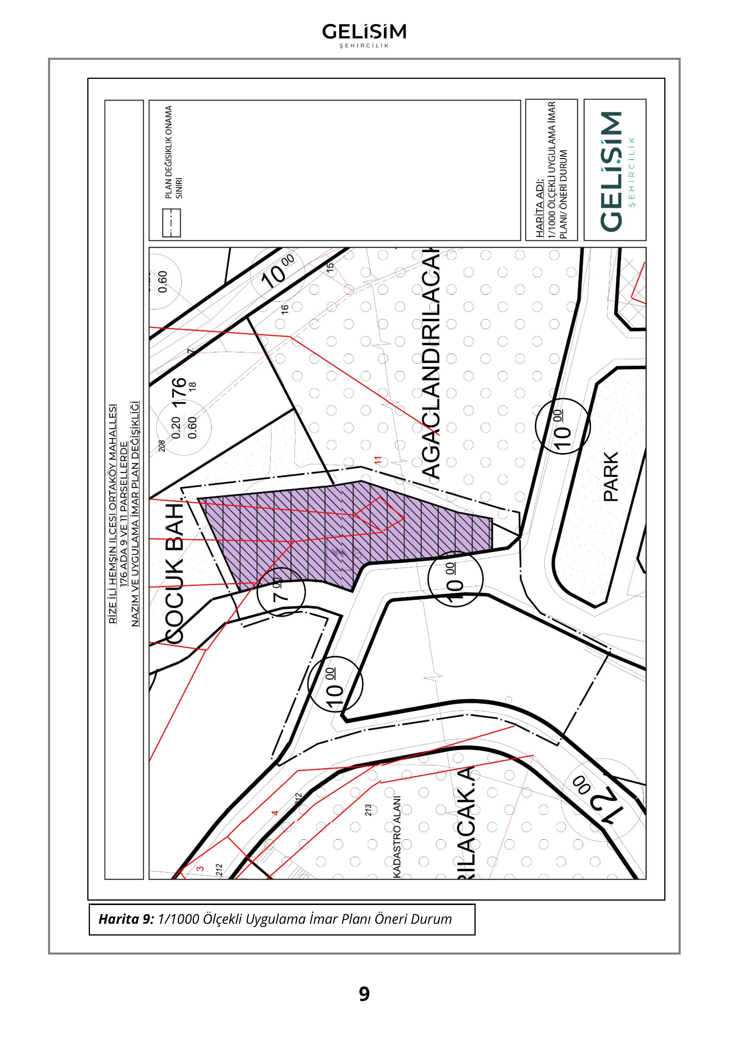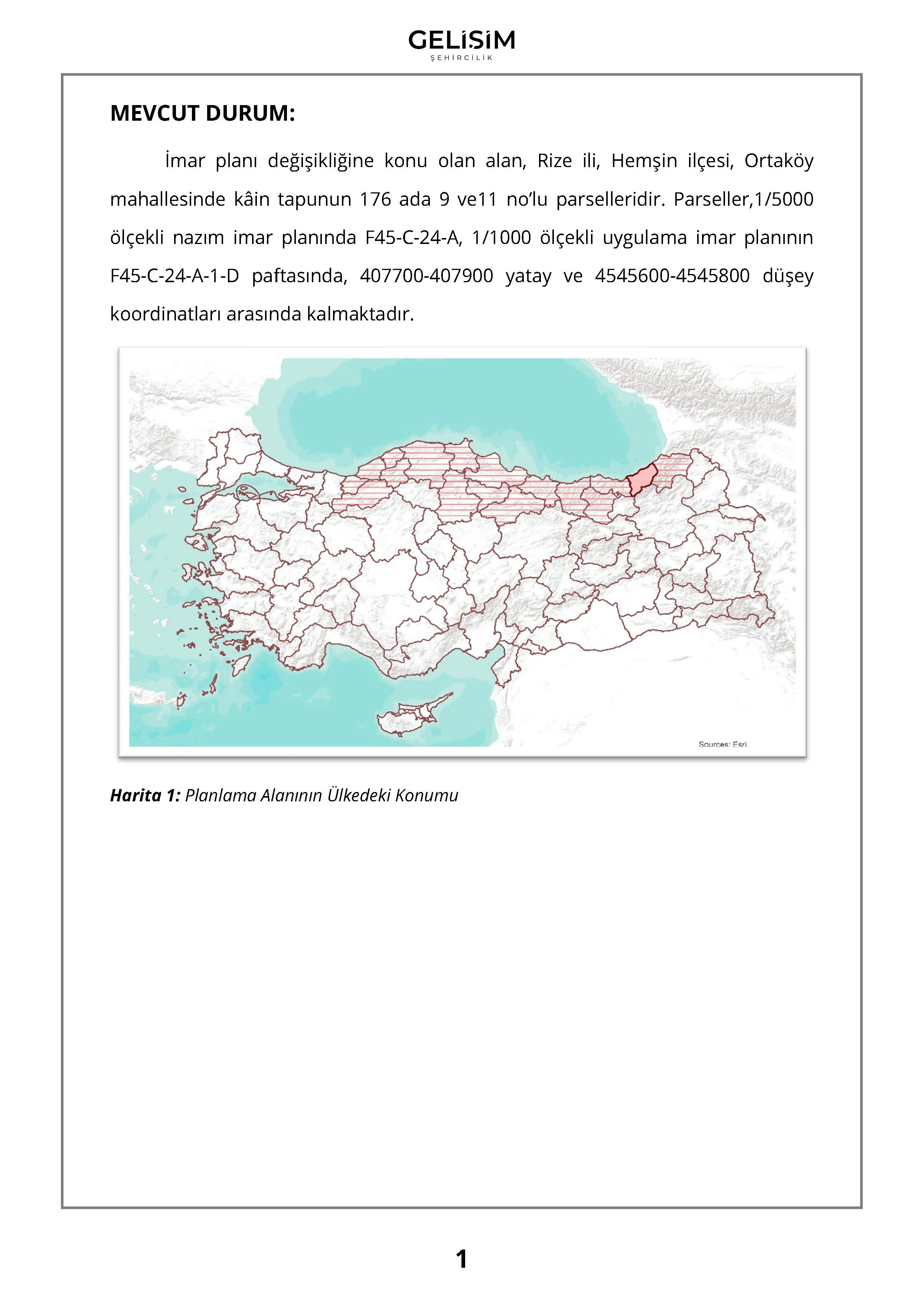 İmar Planı değişikliğine konu alanın Ortaköy Mahallesi Hemşin Deresi sağ sahilinde bulunan 176 ada